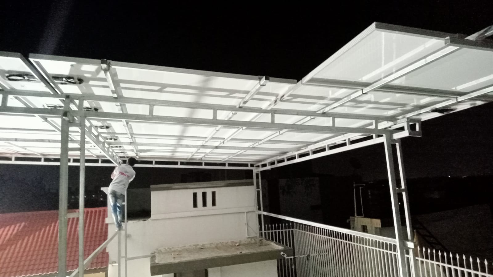 Nikhilbhai, In the period of Covid 19 we had started our work. We had to stop the work and then there were hurdles in imports of panels. Even though Nikhilbhai Vidhya Solar owner managed to get the required panels and most tough work was to erect the complete shade at the height of approximately 35 feet on which he laid out the panels and did the commendable work. He installed 14.8 kw solar plant. In the situation of heavy winds or say cyclonic conditions it has stood perfectly. He comes at six months interval and inspects the plant. May we wish him all the best in his business.👏👏👏